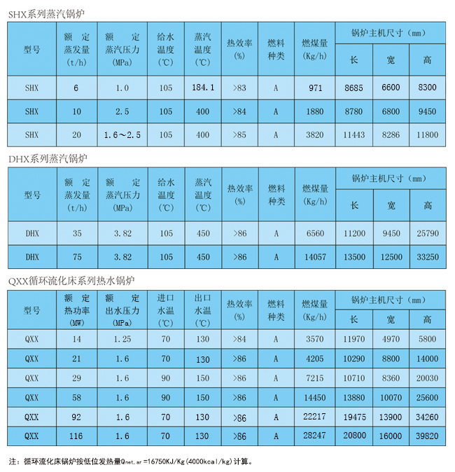 我公司生產(chǎn)的循環(huán)流化床鍋爐系列產(chǎn)品有6t/h、10t/h、20t/h、35t/h、75t/h、120t/h、240t/h蒸汽鍋爐、7.0MW、14MW、21MW、29MW、46MW、58MW、92MW、116MW熱水鍋爐。我公司的循環(huán)流化床產(chǎn)品是我公司和中國科學(xué)院熱能物理研究所、哈爾濱工業(yè)大學(xué)聯(lián)合開發(fā)的具有國內(nèi)先進(jìn)水平的新產(chǎn)品。循環(huán)流化床鍋爐具有煤種適應(yīng)性廣、燃燒效率高、負(fù)荷調(diào)節(jié)范圍寬、可爐內(nèi)脫硫、脫硝、NOx排放量低、環(huán)境保護(hù)好、灰渣可綜合利用等特點(diǎn)。可廣泛應(yīng)用于熱電聯(lián)產(chǎn)和集中供熱事業(yè)。